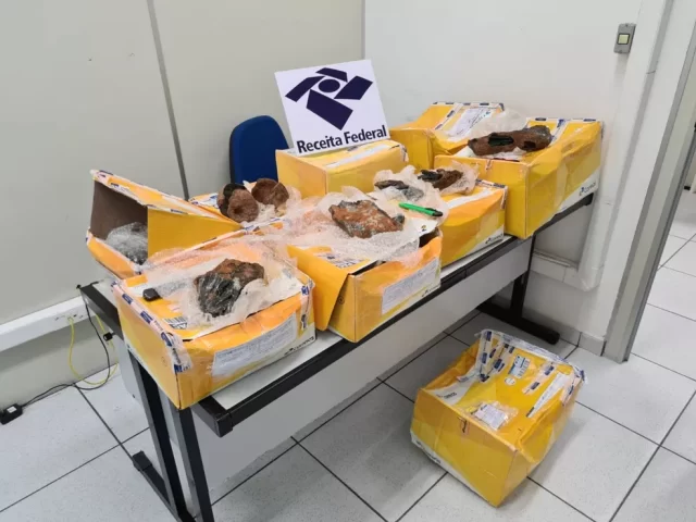 A Receita Federal interceptou uma encomenda postal com 100 kg de pedras aparentemente semipreciosas, em Manaus. A interceptação ocorreu na manhã de terça-feira (2), no Porto da capital.
