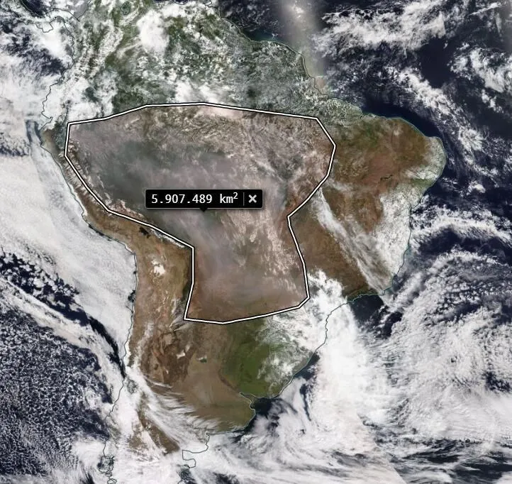 Segundo a Climatempo, parte deste material particulado chegou do Norte ao estado de São Paulo, por conta dos ventos a 1,5km de altitude, que vêm da Região Norte ao Sul e Sudeste do país.Imagens de satélite mostram a nuvem de fumaça se aproximando do estado.