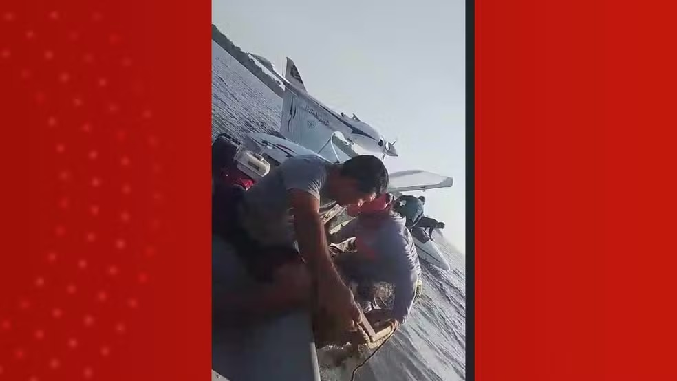 Testemunhas filmaram o momento do resgate. Nas imagens é possível ver o piloto em uma canoa, após ser retirado da água por moradores da região.